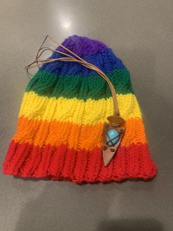 Hand Knitted PRIDE Hat & Turquoise Leather Necklace Set$15Las Vegas, NV