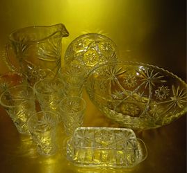 STAR OF DAVID Pitcher, Glasses, Platter, Bowls, Creamer, Sugar$125Arab, AL