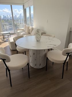 Modern Round Dining Table Set – Marble Look | LIVÉ (5 Pieces)$500Miami, FL