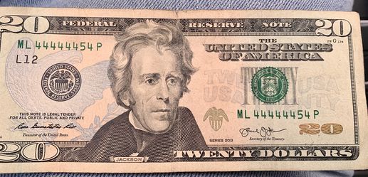 2013 Twenty Dollar Bill $20 Fancy Serial Number SUPER RARE ML —————- P$60San Diego, CA