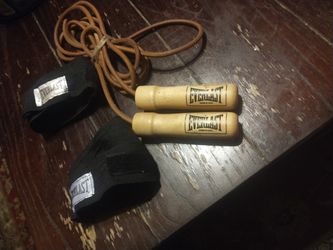 Everlast Jump Rope Vintage Model 4477, -Leather ,Wood Handle With Ball Bearing, And Everlast Hand Wrap Proffesional$40Ivanhoe, CA