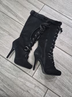 Knee High Black High Heeled Boots With Fur$40Mesa, AZ