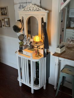 Vintage hall tree hat/coat rack - Antique shabby primitive white farmhouse carved wood umbrella entry way stand$115Phoenix, AZ