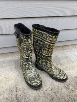 Women's Fleece-Lined Rain Boots - Tribal/Aztec Pattern - Size 9 - Warm & Waterproof$20Portland, OR
