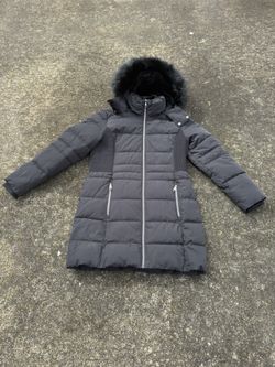 DKNY Black Hooded Puffer Coat with Faux Fur Trim – Women's Size Large$75Portland, OR