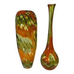 Hand Blown Art Glass Vases – Swirled Orange & Green – Set of 2$60Forked River, NJ