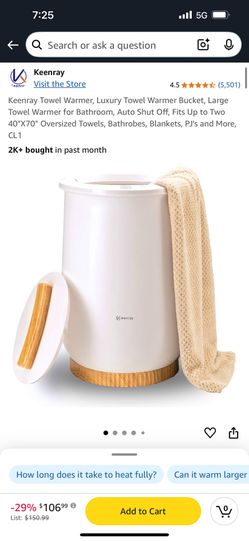 Keenray Towel Warmer, Luxury Towel Warmer Bucket, Large Towel Warmer for Bathroom, Auto Shut Off, Fits Up to Two 40"X70" Oversized Towels, Bathrobes, $50Mineola, NY