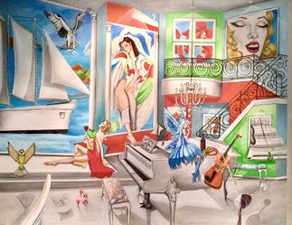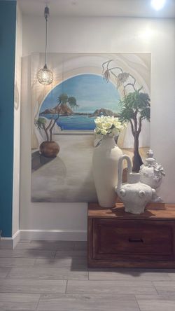 Mediterranean Villa Sea View Canvas Painting $575New York, NY