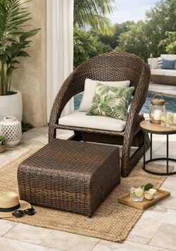 New Wicker Patio Lounge Chair with Ottoman – Lightweight – 400lb Capacity(no Cushions)$90Corona, CA