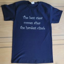 Adult Unisex T-Shirt,Best View Comes After the Hardest Climb T-Shirt, Athletic Navy Blue T-shirt, T-shirt$12Lodi, CA