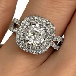 Sterling Silver Cubic Zirconia CZ Double Halo Ring Size 8$200Queens, NY
