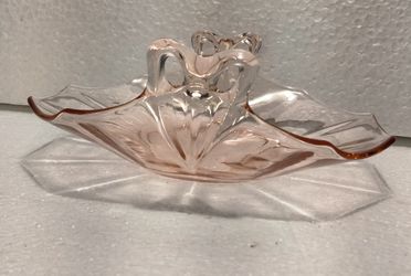 vintage Watermelon Depression Glass Heart Shaped Handle Candy Dish $25Desoto, TX