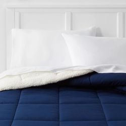 Full/Queen Faux Shearling Washed Microfiber Reversible Comforter Navy - Room Essentials™: OEKO-TEX Certified, 180 Thread Count 92 Inches (L), 88 Inche$25Colorado Springs, CO