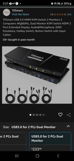 TESmart USB 3.0 HDMI KVM Switch 2 Monitors 2 Computers 4K@60Hz, Dual Monitor KVM Switch HDMI 2 Port Extended Display, Audio&Microphone, EDID Emulators$175St. Petersburg, FL