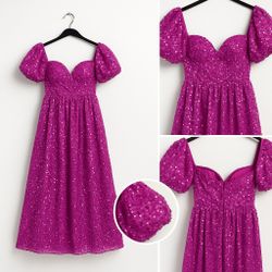 ✨ XS Fuchsia Sequin Gown – Off Shoulder Puffy Sleeve Sparkly Evening Dress | Formal Prom Bridesmaid Dress$45Chino Hills, CA