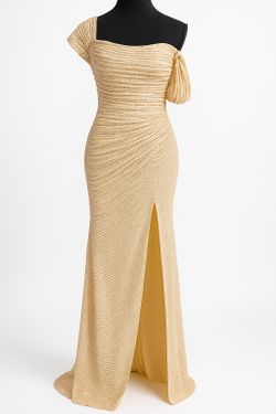 Champagne Gold One-Shoulder Sequin Evening Gown with Side Slit | Elegant Formal Dress-XS$45Chino Hills, CA