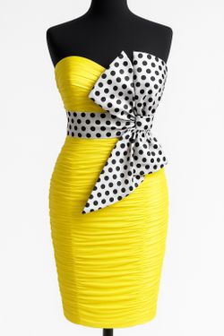 Elegant Yellow Strapless Cocktail Dress with Polka Dot Bow$45Chino Hills, CA