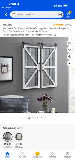 Wall decoration White and Silver Carriage Barn Door Wall Plaque 2-Piece Set, Farmhouse, Framed, 14 x 2 x 34 inch$39Inman, SC