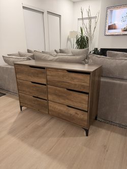 New assembled six drawer double dresser 46.5”W x15.5”D x 32”H Color: Knotty Oak$199Inman, SC