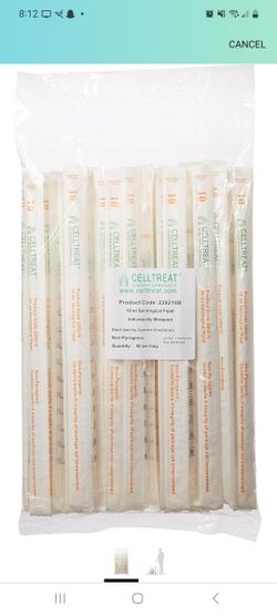 Celltreat 229210B Serological Pipet, 10mL Capacity, Sterile, Individually Wrapped/BagÂ