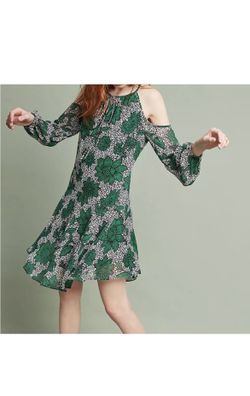 Donna Morgan Floral Shift Green Black Dress Long Sleeve Cold Shoulder Size 8$25San Lorenzo, CA
