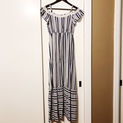 Navy Blue White Striped Off The Shoulder Maxi Dress Medium$100DW GDNS, TX