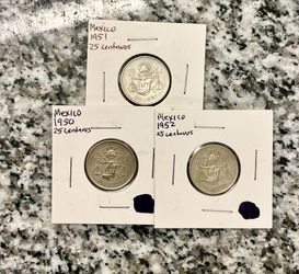 3 Beautiful 25 cent silver coins from Mexico 1950, 1951, 1952$21Moreno Valley, CA
