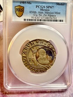1985 SP 67 Mo 450 Th Ann Mexico Mint Cu Ni Zn Alpacas beautiful medal with commemorative$400Moreno Valley, CA