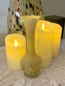 VINTAGE HAND BLOWN SLAG GLASS BUD VASE FROSTED AMBER RUFFLED EDGE $10Lakehurst, NJ
