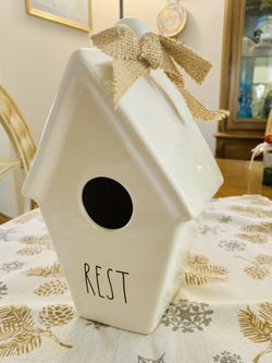 New Rae Dunn Birdhouse "REST" Tapered Roof Bird House Ceramic Egg Nest by Magenta. $10Lakehurst, NJ