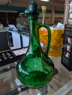 Vintage Green Glass Cruet Bottle With Stopper Hand Blown Mid Century Decor Art$15Elk Grove, CA