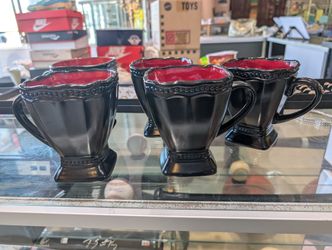 Set Of 5 Roscher & Co Hobnail Collection Black Stoneware Mugs Red Interior$15Elk Grove, CA