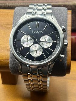 Bulova Stainless Steel Chronograph Watch — Black Dial, Box & Extra Links$185Santa Monica, CA