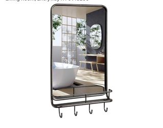 Wall Mounted Mirror w/ Shelf & Hooks, Black Metal Framed Vanity Rectangle Mirror for Home Decor, Bathroom, Bedroom, Living Room, Entryway$35Pumpkin Center, CA