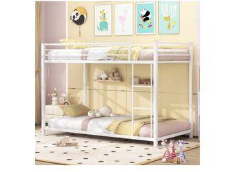 Gymax Twin Over Twin Low Metal Bunk Bed with Ladder Guardrails for Teens Adults White$120Pumpkin Center, CA