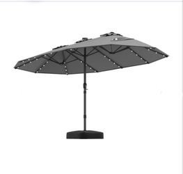 SoldCostway 15ft Extra Large Outdoor Patio Double-Sided Umbrella with Solar Lights & Umbrella Base, Smoky Gray$130Pumpkin Center, CA