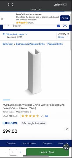 KOHLER Archer 24” Pedestal Sink Basin And Uline Sit/Stand Desktop Riser – Medium, Black $220Chicago, IL