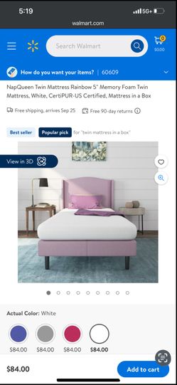 NapQueen Rainbow 5" Twin, Memory Foam Mattress, White$70Chicago, IL