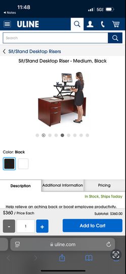 Sit/Stand Desktop Riser - Medium, Black$280Oak Park, IL