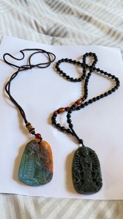 Two Vintage Engraved Stones ( Black Jade And Multicolor) Chainese Necklaces $25Oceanside, CA