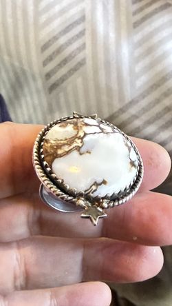 Sterling Silver White Horse Turquoise Ring With Small Moon And Star On Edge Of It, Almost 14grams$40Oceanside, CA