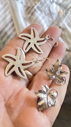 Two Pair Of Sterling Silver Earrings; One Is Vintage Star Shape And The Other Is Leave Shape Shining With A White Cz$35Oceanside, CA