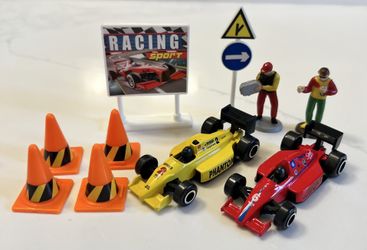 Toy Racing Track – 2 Formula Race Cars, Traffic Cones, Pit Crew Figures and Sign$15Houston, TX