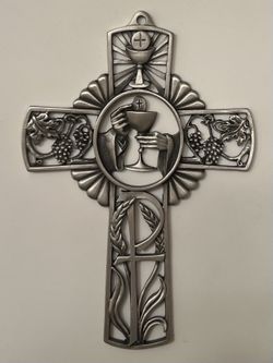First Communion Cross Pewter Wall Cross with Chalice and Eucharist$20Houston, TX