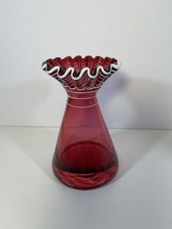 Vintage Fenton Cranberry Ruffled Crimped With Top White Stripe$25Hull, MA