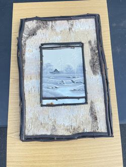 Rustic Framed Painted Mirror Twigs Bark Birch$25Hull, MA