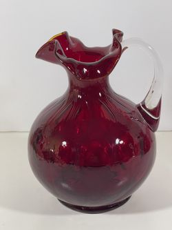 Fenton Red Cranberry Ruffled Glass Pitcher Coin Dot Optic 7"$20Hull, MA