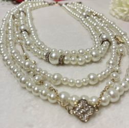 Elegant Vintage Multi-Layer Multi strand Pearl/Gold Necklace With Clover Charms$40Johns Creek, GA