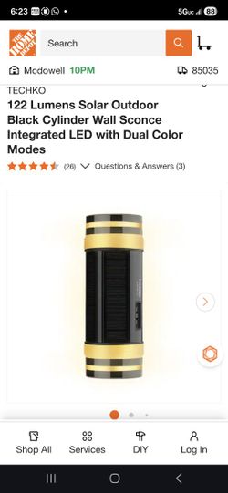 TECHKO Outdoor Solar Sconce Cylinder Uni-directional 9.84-in H Black Solar Dark Sky Dusk to Dawn Integrated LED Outdoor Wall Light$20Phoenix, AZ