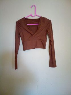 $5 Brown V neck Long Sleeve Crop Top (S)$5Fontana, CA